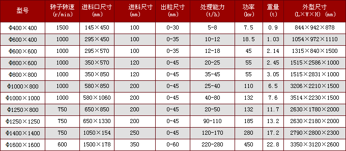 小型錘式破碎機型號參數(shù)